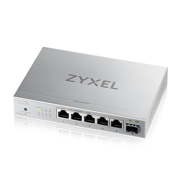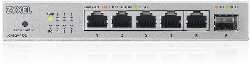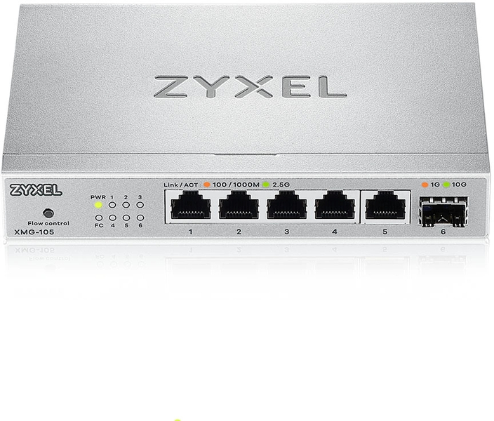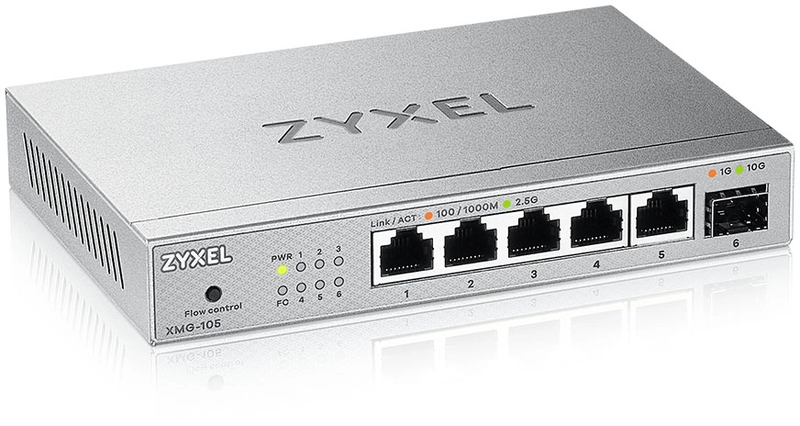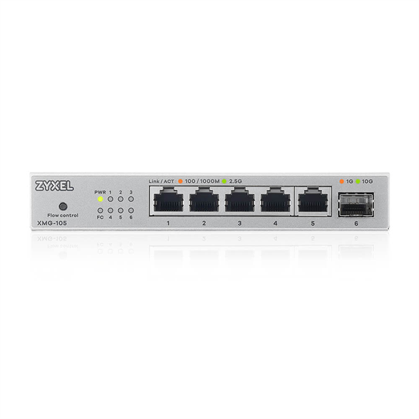 Неуправляемый коммутатор Коммутатор/ Мультигигабитный коммутатор Zyxel XMG-105, 5xRJ-45: 1/2.5G, 1xSFP+, настольный, бесшумный