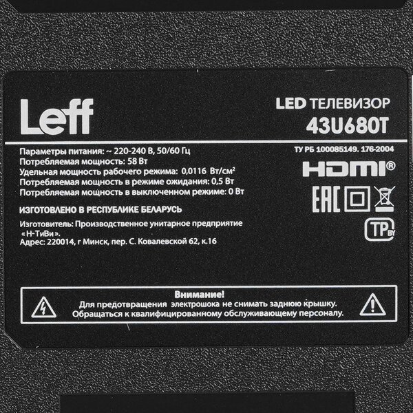 Телевизор Телевизор LEFF 43U680T LCD 43" SALUT SMART 4K купить в интернет-магазине TPShop.Ru. Наличный и безналичный расчет, розничные и оптовые продажи. Самовывоз, доставка по Москве и МО, отправка во все регионы России.