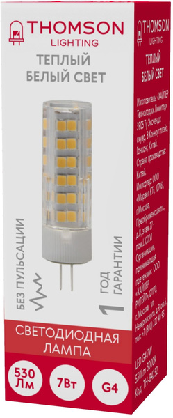Лампа светодиодная Thomson TH-B4232 7Вт цок.:G4 капсул. 220B 3000K св.свеч.бел.теп. (упак.:1шт) купить в интернет-магазине TPShop.Ru. Наличный и безналичный расчет, розничные и оптовые продажи. Самовывоз, доставка по Москве и МО, отправка во все регионы России.