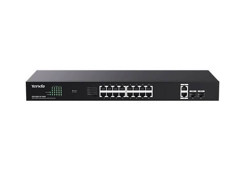 Управляемый коммутатор для рабочих групп Tenda TEG1120P-16-150W Коммутатор неуправляемый PoE, 18 портов, 18x1 Гбит/с, PoE 16х30 Вт (до 150Вт), SFP 2x1 Гбит/с, установка в стойку