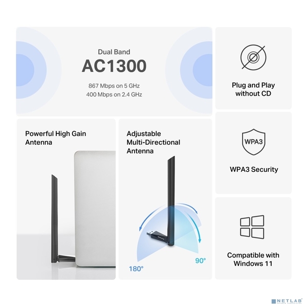 Сетевой адаптер Mercusys MA30H AC1300 Двухдиапазонный Wi-Fi USB-адаптер высокого усиления купить в интернет-магазине TPShop.Ru. Наличный и безналичный расчет, розничные и оптовые продажи. Самовывоз, доставка по Москве и МО, отправка во все регионы России.