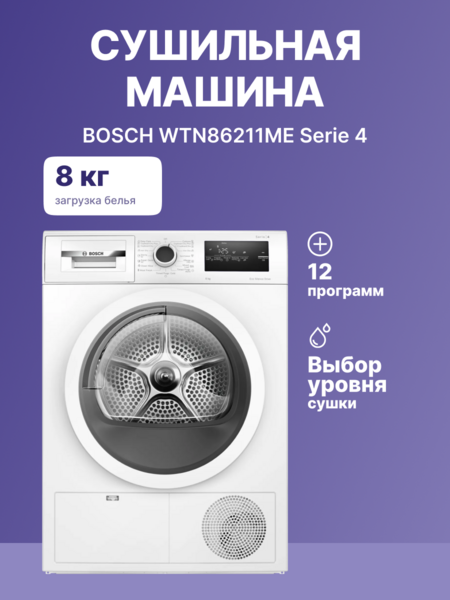 84.2х59.8х61.3 см, Serie 4, конденсационный сушильный барабан, 8кг, белый цвет,QuickDry Auto program,AutoDry,EcoSilence™ Motor купить в интернет-магазине TPShop.Ru. Наличный и безналичный расчет, розничные и оптовые продажи. Самовывоз, доставка по Москве и МО, отправка во все регионы России.