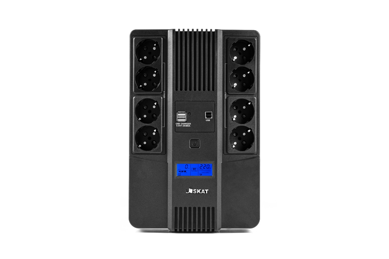 - (8933) SKAT-UPS 800-AID-IN-1x9-8 ИБП 220В 480Вт, LCD, АКБ 1x 9Ач, line interactive, мод.синус, 8хSchuko,2xUS