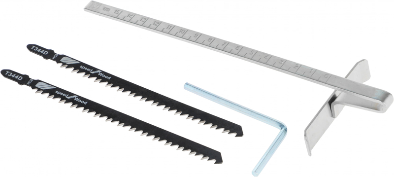 - Ножницы листовые, ключ шестигранный, параллельная направляющая, пилка по дереву, пилка по металлу.