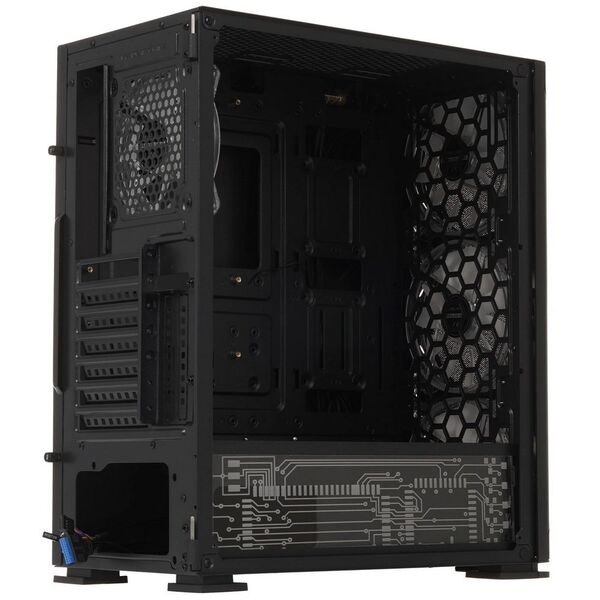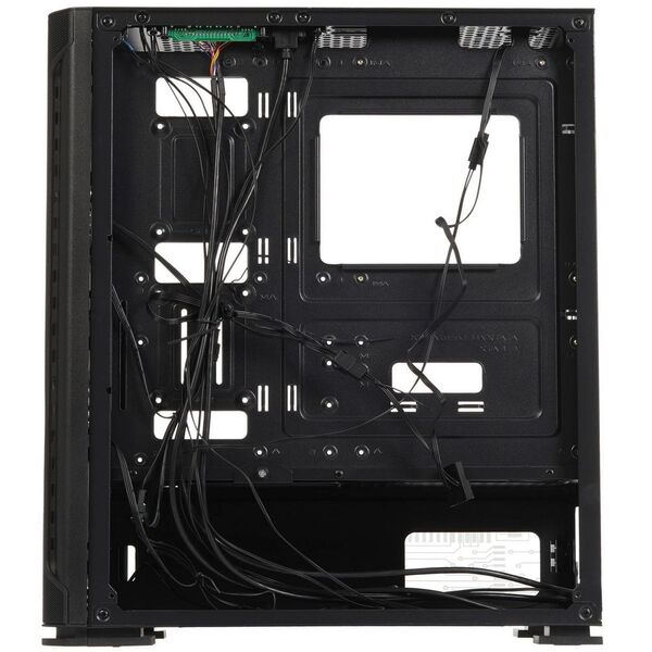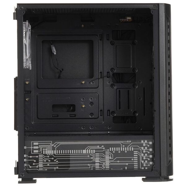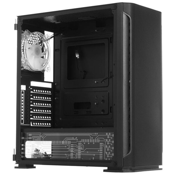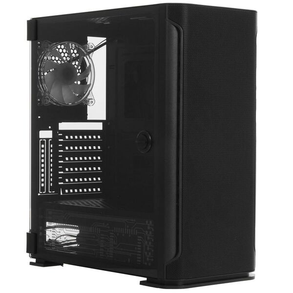 Exegate EX293015RUS Корпус Miditower ExeGate EVO-8225-NPX600 (ATX, БП 600NPX с вент. 12см, 2*USB+1*USB3.0, черный, 2 вент. с RGB подсветкой и полоса на передней панели, боковая панель - закаленное сте