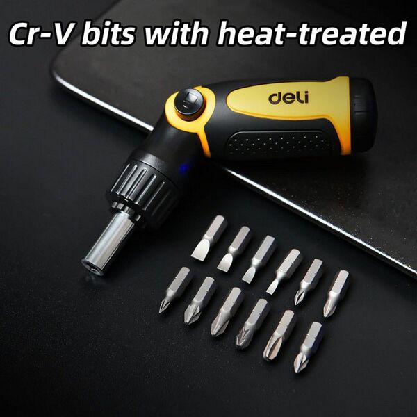 Отвертка Deli Многофункциональная отвертка с трещоткой 13-в-1 Deli DL260113 длина 165мм, 12 бит CrV, прорезиненная рукоять
