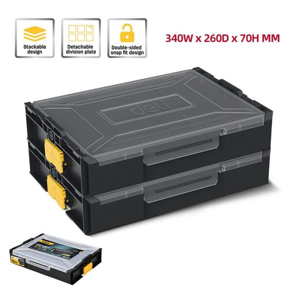 Органайзер пластиковый штабелируемый с переставными перегородками Deli DL1201 340 х 260 х 70 мм