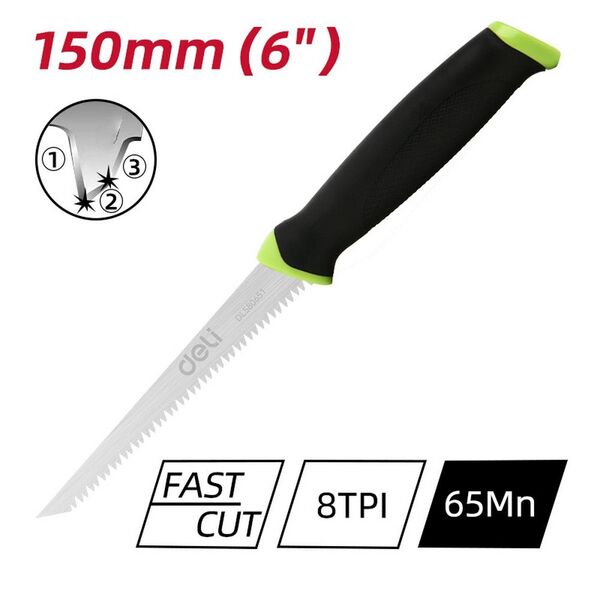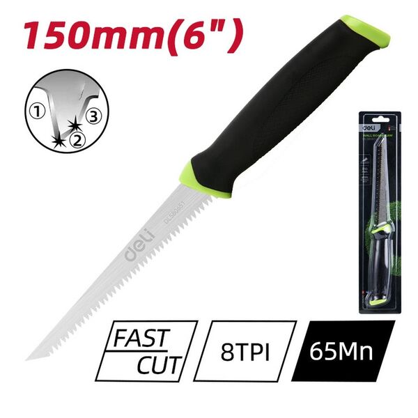 Ножовка выкружная по гипсокартону Deli DL580651 150мм, сталь 65Mn, 8TPI, шлифовка зубцов с 3-х сторон купить в интернет-магазине TPShop.Ru. Наличный и безналичный расчет, розничные и оптовые продажи. Самовывоз, доставка по Москве и МО, отправка во все регионы России.
