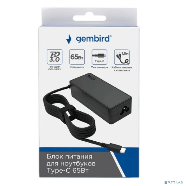 Блок питания Gembird для ноутбуков NPA-DC10, PD3.0, 65Вт, штекер Type-C купить в интернет-магазине TPShop.Ru. Наличный и безналичный расчет, розничные и оптовые продажи. Самовывоз, доставка по Москве и МО, отправка во все регионы России.