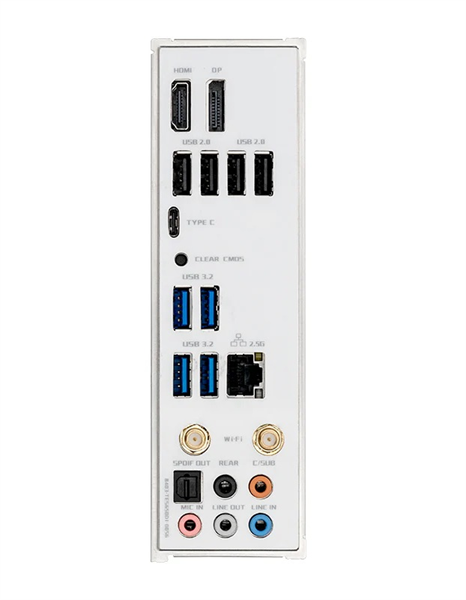 - 6xUSB 3.2 Gen 1, 6xUSB 2.0, 2xUSB 3.2 Gen 2 Type C, HDMI, DisplayPort, COM