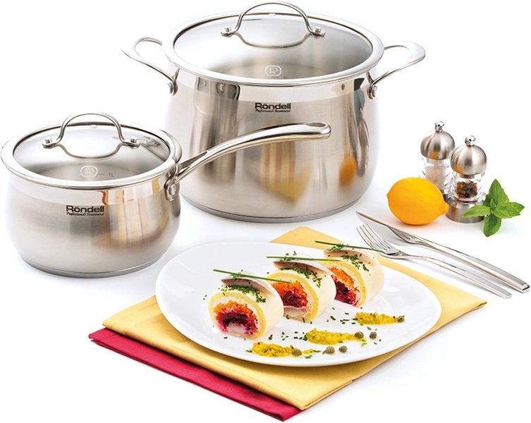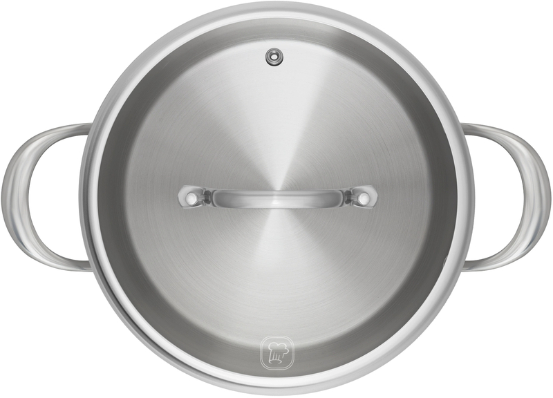 - Технология: тройное вштампованное, затем вплавленное дно без воздушных полостей. Материал крышки: термостойкое стекло. Аксессуары: Литые, из нержавеющей стали. Преимущества: эргономичная форма ручек; Равномерный прогрев изделия; Округлая форма корпуса; Высокие стенки корпуса – большой литраж посуды