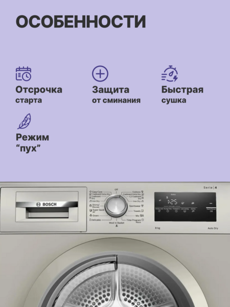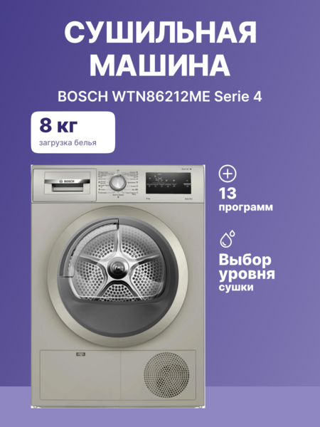 84.2х59.8х61.3 см, Serie 4, конденсационный сушильный барабан, 8кг,цвет Silver inox,QuickDry Auto program,AutoDry,EcoSilence™ Motor купить в интернет-магазине TPShop.Ru. Наличный и безналичный расчет, розничные и оптовые продажи. Самовывоз, доставка по Москве и МО, отправка во все регионы России.
