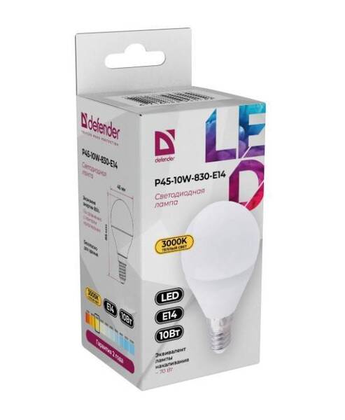 Defender Лампочка светодиодная P45-10W-830-E14 шар, 3000 К, теплый белый, 1 шт. купить в интернет-магазине TPShop.Ru. Наличный и безналичный расчет, розничные и оптовые продажи. Самовывоз, доставка по Москве и МО, отправка во все регионы России.