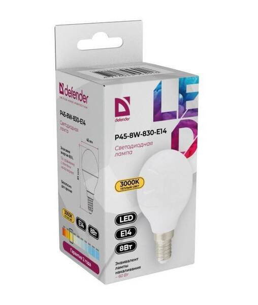 Defender Лампочка светодиодная P45-8W-830-E14 шар, 3000 К, теплый белый, 1 шт. купить в интернет-магазине TPShop.Ru. Наличный и безналичный расчет, розничные и оптовые продажи. Самовывоз, доставка по Москве и МО, отправка во все регионы России.