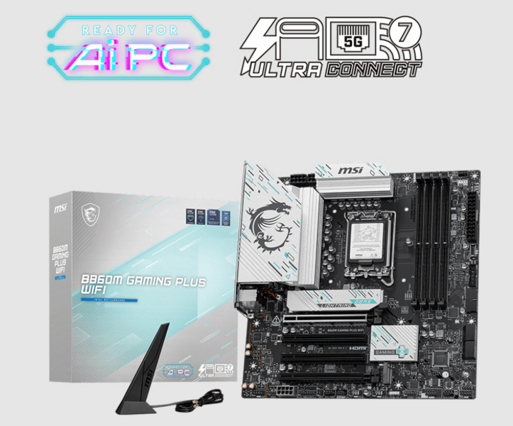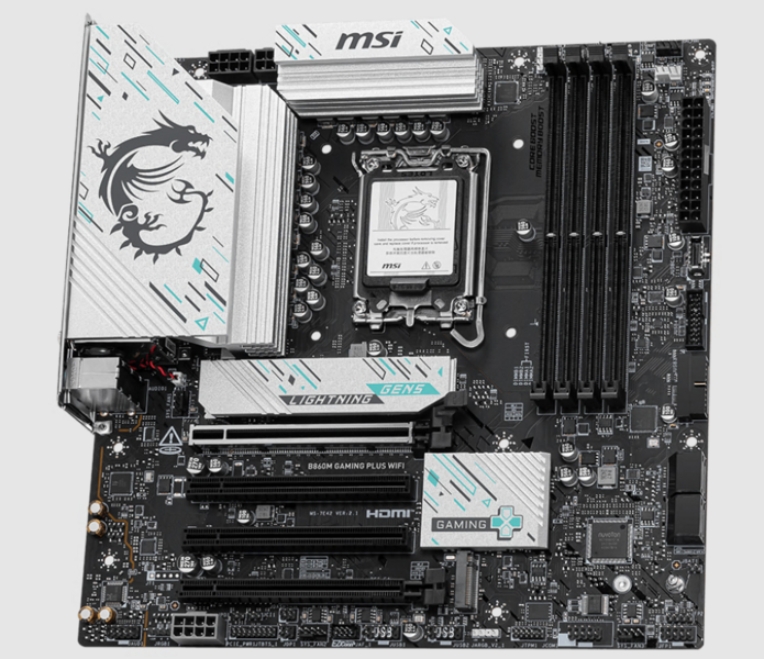 Материнская плата Материнская плата MSI B860M GAMING PLUS WIFI Soc-1851 Intel B860 4xDDR5 mATX AC`97 8ch(7.1) 5Gigabit RAID+HDMI+DP