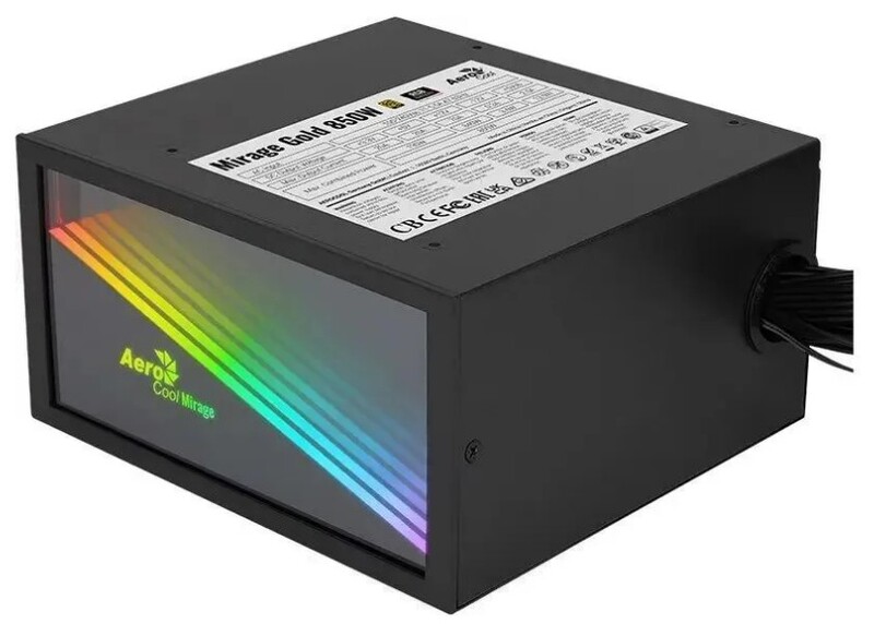 Блок питания Блок питания ATX12V Ver. 2.52 650W 80+Gold, APFC, 120mm fan, ARGB, 24pin, 2x(4+4)pin, 2xPCI-E, 3xMolex, 6xSATA, Mirage Gold 650W Fully Modular 4711099472581 Aerocool