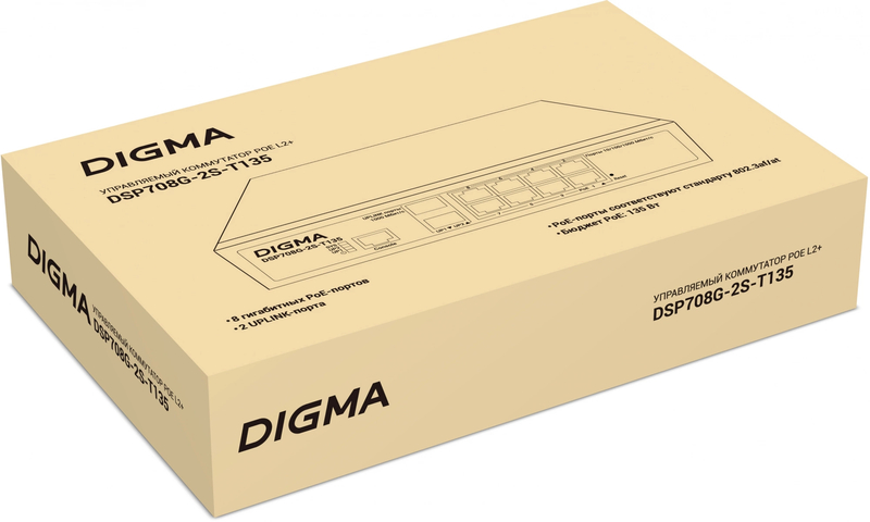 Управляемый коммутатор для рабочих групп Коммутатор Digma DSP708G-2S-T135 (L2+) 8x1Гбит/с 2SFP 8PoE 8PoE+ 135W управляемый купить в интернет-магазине TPShop.Ru. Наличный и безналичный расчет, розничные и оптовые продажи. Самовывоз, доставка по Москве и МО, отправка во все регионы России.