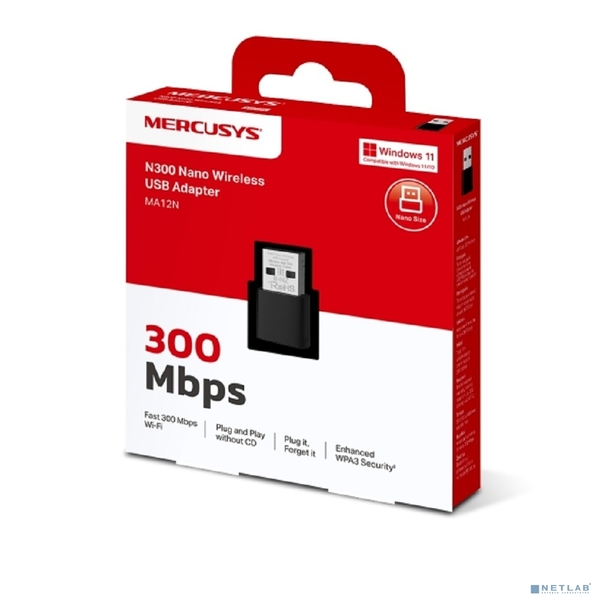 Сетевой адаптер Mercusys MA12N Сверхкомпактный USB-адаптер с поддержкой Wi-Fi N300