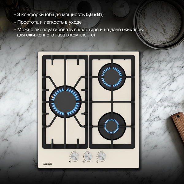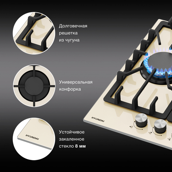 Варочная панель Газовая варочная поверхность Hyundai HHG 4333 BE бежевый