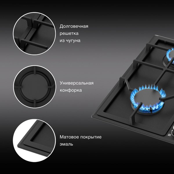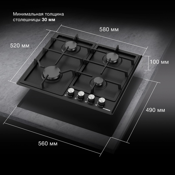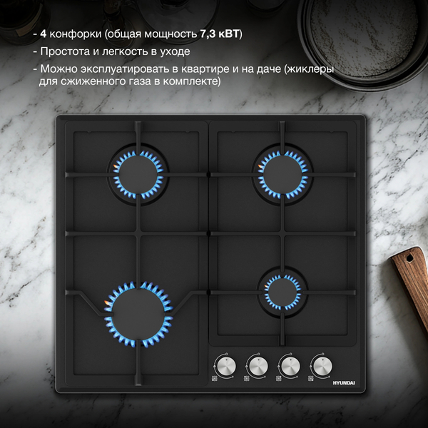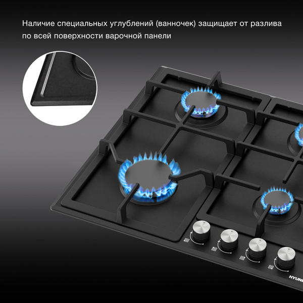 Варочная панель Газовая варочная поверхность Hyundai HHG 6432 BK черный