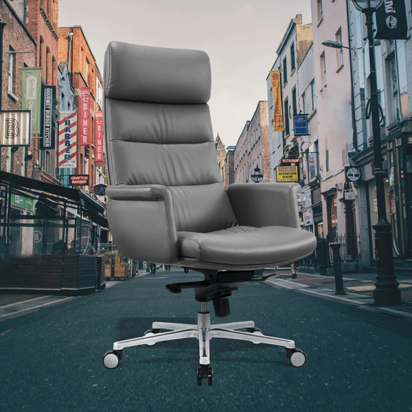 Кресло руководителя Cactus CS-LGR-DUBLIN темно-серый сиденье темно-серый кожа крестов. алюминий