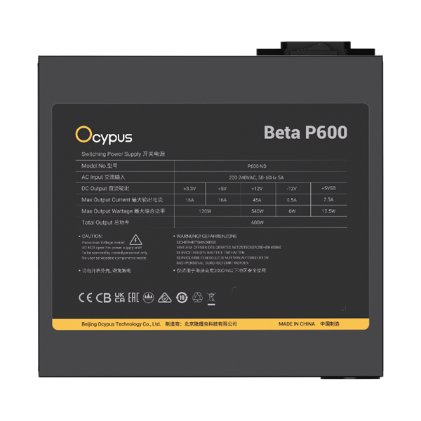 - Ocypus Beta P600, 600W, APFC, 120mm Fan (P600-N)