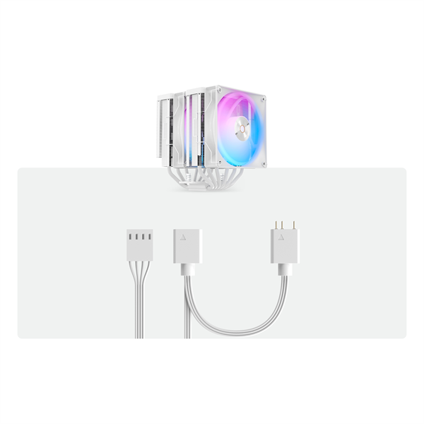 - Ocypus Delta A62 WH ARGB, 2x120mm ARGB FAN, Top Panel, 6 HEAT PIPES, 4-PIN PWM, 500-2000 RPM, 29DBA, HYDRO BEARING, LGA115X/1200/1700/18XX, AM4/AM5