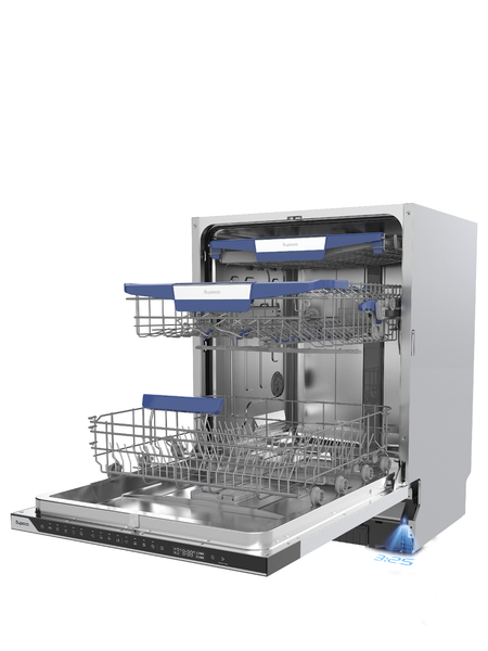 - Программы: ЭКО, автоматическая, гигиена, ночная, 90 минут, 58 минут, быстрая, предварительное ополаскивание, самоочистка. Дополнительные функции: дополнительная сушка, проекция времени на пол, ускоренная мойка, автоматическое открывание дверцы, выбор работы разбрызгивателей, защита от протечек AquaStop.