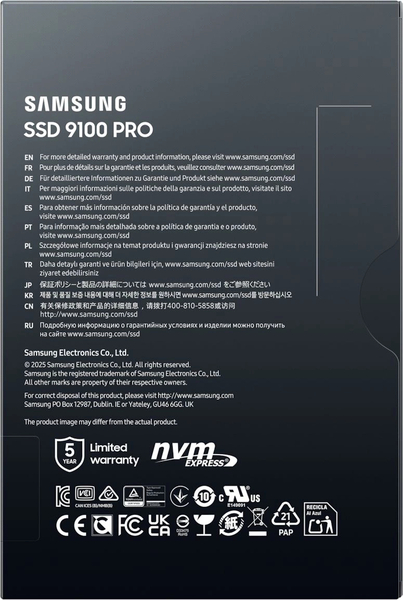 Твердотельный диск 1TB Samsung 9100 PRO, M.2, PCI-E 5.0 x4, TLC 3D NAND [R/W - 14800/13400 MB/s]