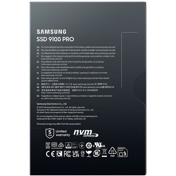 Твердотельный диск 2TB Samsung 9100 PRO, M.2, PCI-E 5.0 x4, TLC 3D NAND [R/W - 14800/13400 MB/s]