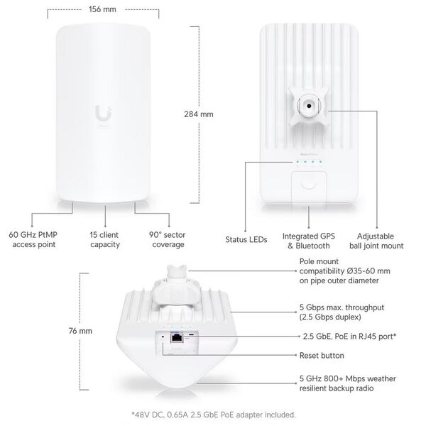 UBIQUITI Wave-AP-Micro Базовая станция 60 ГГц (с резервированием 5 ГГц), UISP Wave Technology, 20 дБи