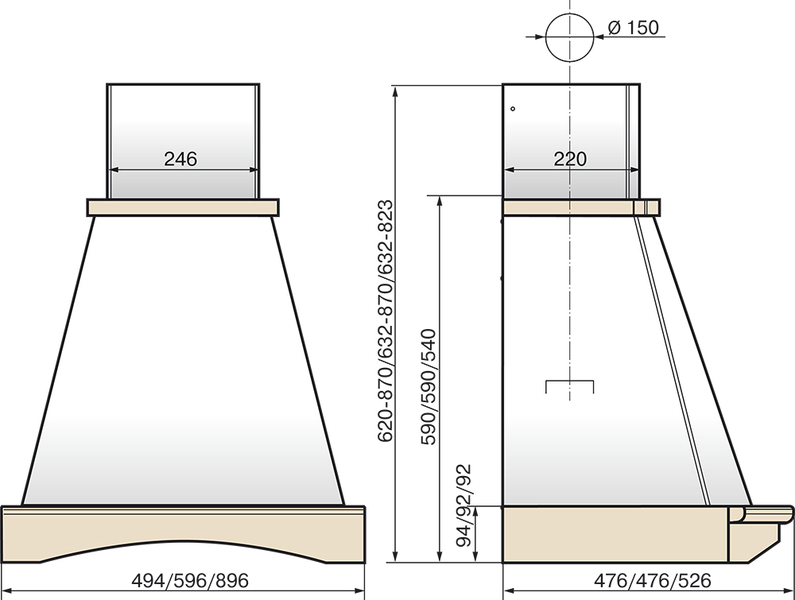 GOOD, Кухонная вытяжка ELIKOR КВ Ротонда 60П-650-П3Л бежевый/дуб Нэнси