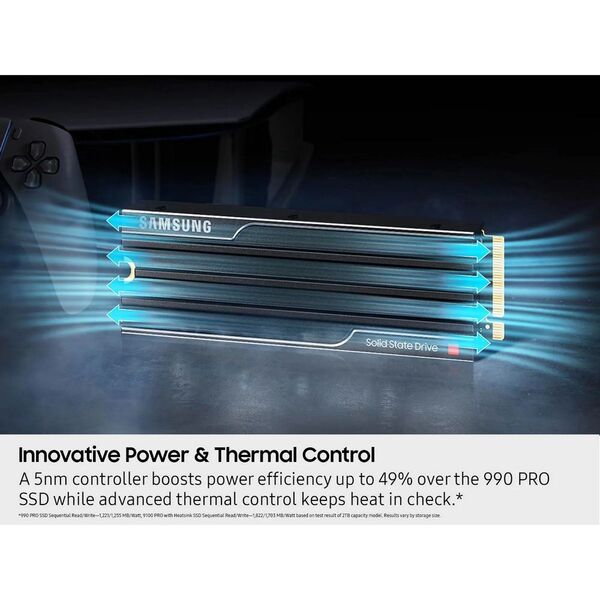 Samsung SSD 990 PRO, 1TB, M.2 (22x80mm), NVMe 2.0, PCIe 4.0 x4, V-NAND TLC, R / W 7450 / 6900MB / s, IOPs 1 200 000 / 1 550 000, TBW 600, DWPD 0.33 (12 мес.)