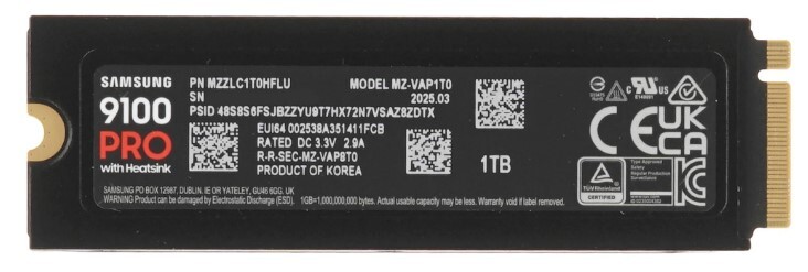 Твердотельный накопитель/ Samsung SSD 9100 PRO, 1000GB, M.2(22x80mm), NVMe 2.0, PCIe 5.0 x4, V-NAND TLC, R/W 14700/13300MB/s, IOPs 1 850 000/2 600 000, TBW 600, DWPD 0.3, with Heatsink (12 мес.) купить в интернет-магазине TPShop.Ru. Наличный и безналичный расчет, розничные и оптовые продажи. Самовывоз, доставка по Москве и МО, отправка во все регионы России.