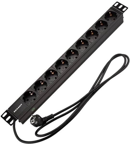Rexant (04-0105-1) Блок распределения питания для 19" шкафов, горизонтальный, 9 розеток СЕЕ 7/4, 16A, без выкл, алюм корп, шнур 2м, вилка СЕЕ 7/7 купить в интернет-магазине TPShop.Ru. Наличный и безналичный расчет, розничные и оптовые продажи. Самовывоз, доставка по Москве и МО, отправка во все регионы России.