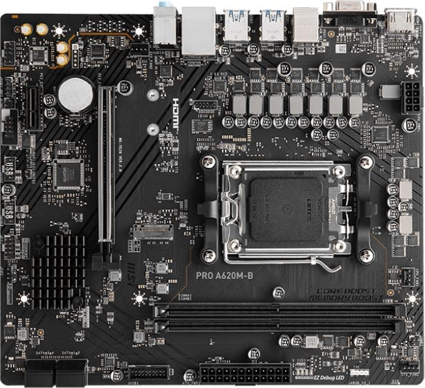 - MSI PRO A620M-B,A620,AM5,2DDR5,1PCI-Ex16,1PCI-Ex1,1M.2,4SATA3,6USB3.2 Gen1,6USB2.0,HD