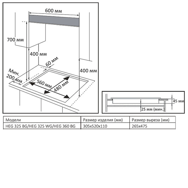 - Материал варочной панели