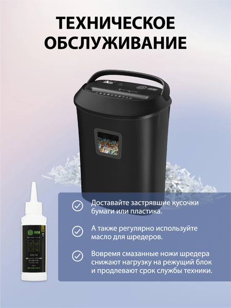 Шредер ГЕЛЕОС УМ28-4, DIN P-4 (4 ур-нь секр.), фрагмент 3, 9х30мм, 19-21 лист (70г / м2), CD / пл.карты / скрепки / скобы, 28 литров