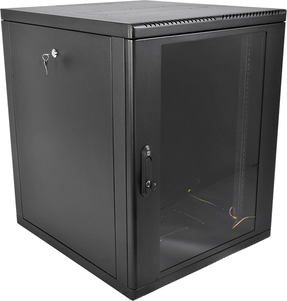 Шкаф настенный ЦМО ШРН-Э-12.500-9005 12U 600x520мм пер.дв.стекл несъемные бок.пан. 50кг черный