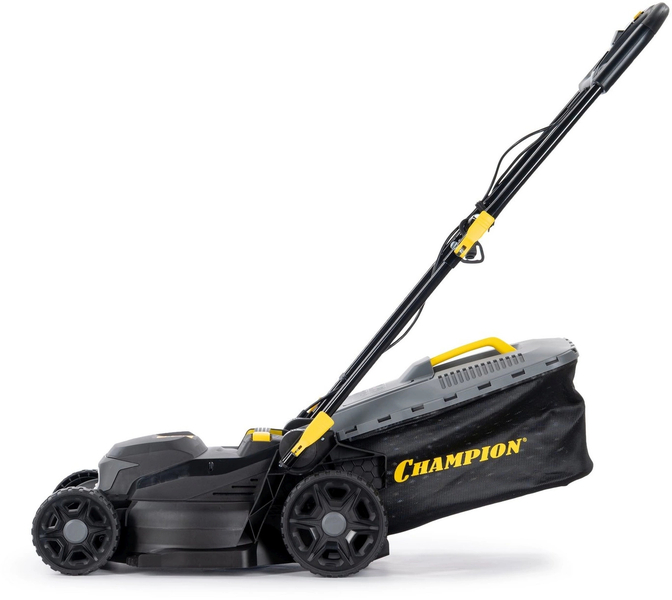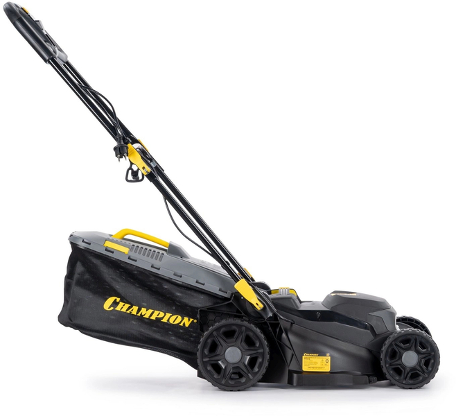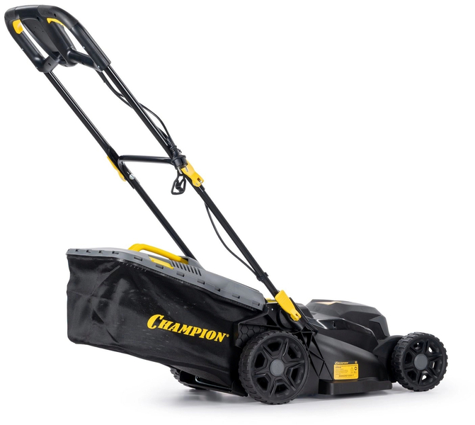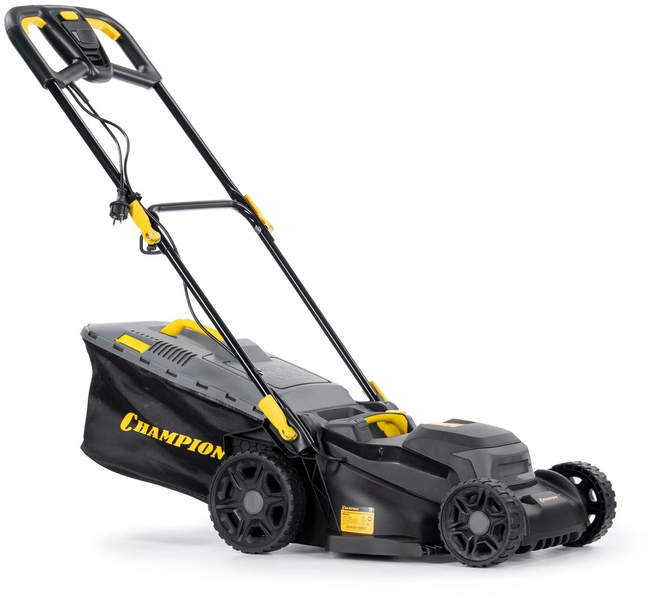 CHAMPION Газонокосилка эл. EM4118 { 1, 8 кВт пласт.+ткань травосб. 50л ширина 420мм 25-75мм, 13кг }
