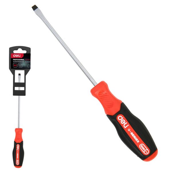 Крестовая отвертка Deli DL636200 PH2x200мм Материал: CR-V. Двухкомпонентная ручка. Хромированная.