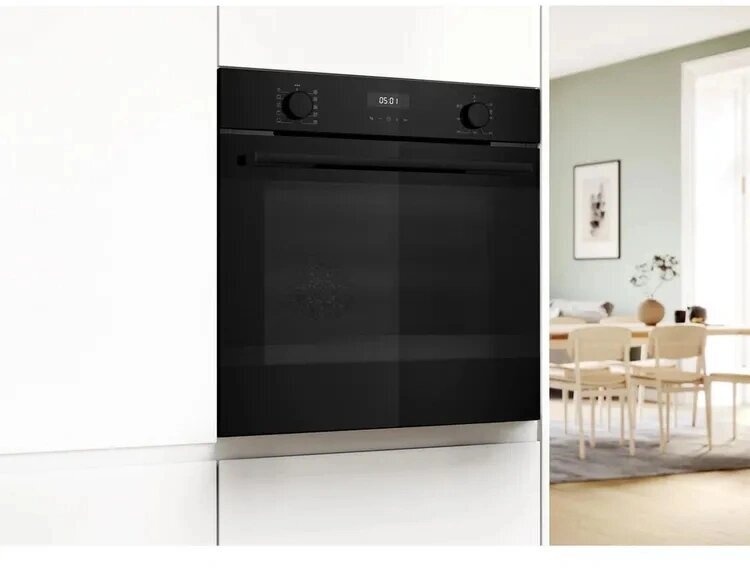 Духовой шкаф Serie 4, духовой шкаф электрический, 60 см, 76 л, черный, Auto Pilot 10, 3D Hotair,класс энергоэффективности А, 7 режимов, LCD-дисплей, галогенное освещение, самоочистка EcoClean,проволочные направляющие