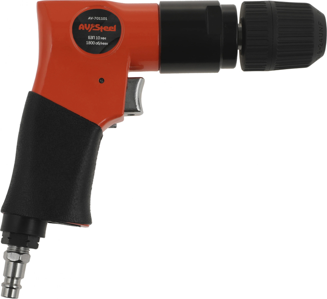 - Пневмодрель AV Steel AV-701101 предназначена для сверления отверстий в различных материалах. Имеет реверс, что позволяет извлекать заклинившее сверло, а так же работать со левосторонними сверлами. Рекомендуется использовать подключение шлангом со внутренним диаметром не менее 8 мм.