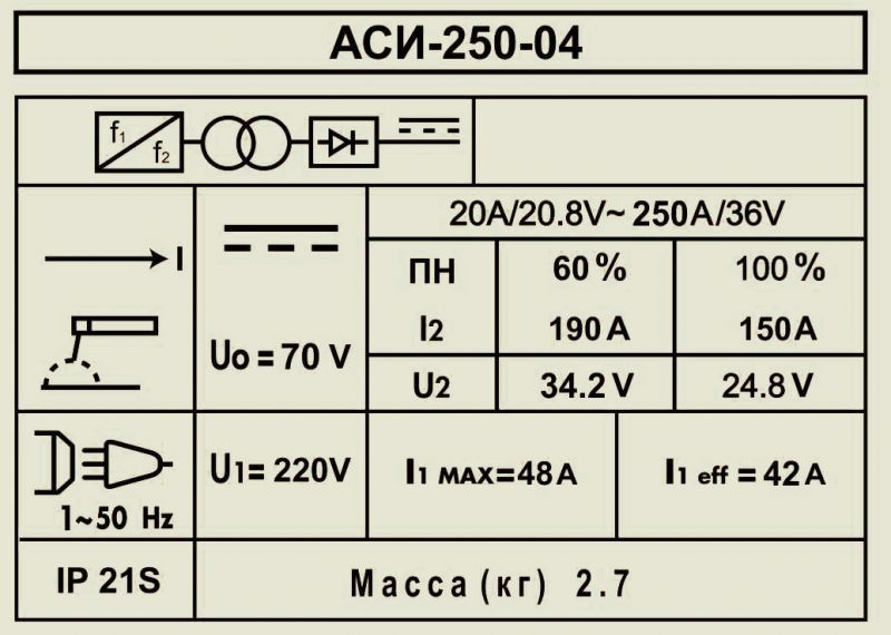 - Аппарат сварочный инверторный АСИ-250-04 относится к устройству электросварочному бытового применения и предназначен для неразъемного соединения металлических частей с помощью электрической дуги, возникающей между электродом и свариваемым материалом.