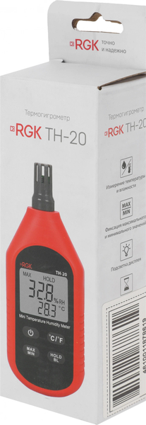 - Цифровой термогигрометр RGK TH-20 - это компактное и мобильное устройство, предназначенное для оценки режима хранения продукции на складах, контролю условий труда в производственных и офисных помещениях.(электронный формат сертификата https://fgis.gost.ru/fundmetrology/cm/results)