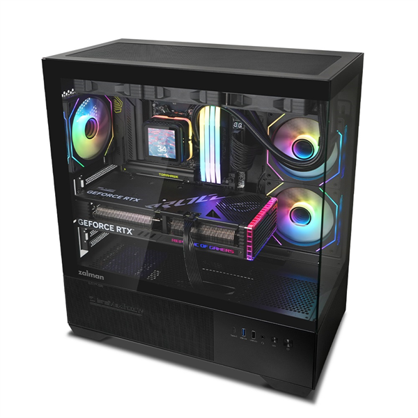 - ZALMAN CHRONIX, ATX, BLACK, WINDOW, 1xCombo (3.5’’ or 2.5’’), 1x3.5’’HDD, 2x2.5’’SSD, 1xUSB2.0, 1xUSB3.0, 1xUSB Type-C, SIDE 2x120mm ARGB, REAR 1x120mm ARGB