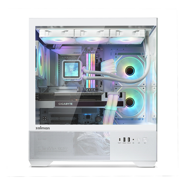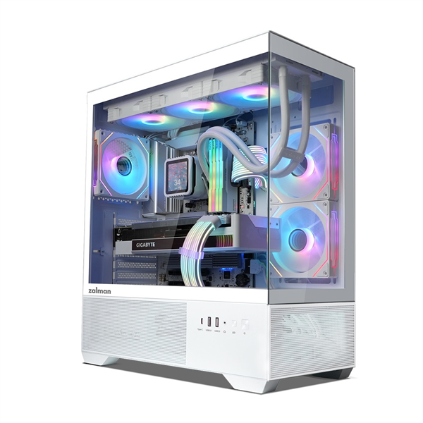 - ZALMAN CHRONIX, ATX, WHITE, WINDOW, 1xCombo (3.5’’ or 2.5’’), 1x3.5’’HDD, 2x2.5’’SSD, 1xUSB2.0, 1xUSB3.0, 1xUSB Type-C, SIDE 2x120mm ARGB, REAR 1x120mm ARGB