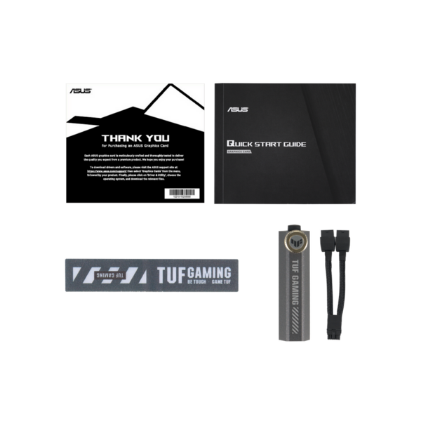 - Видеокарта, кабель- адаптер питания, держатель видеокарты, застежка-липучка, документация