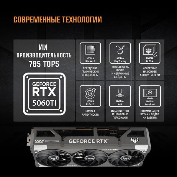 Видеокарта Видеокарта ASUS TUF-RTX5060TI-O16G-GAMING//RTX5060TI HDMI DP*3 16G D7; 90YV0MG0-M0NA00 купить в интернет-магазине TPShop.Ru. Наличный и безналичный расчет, розничные и оптовые продажи. Самовывоз, доставка по Москве и МО, отправка во все регионы России.