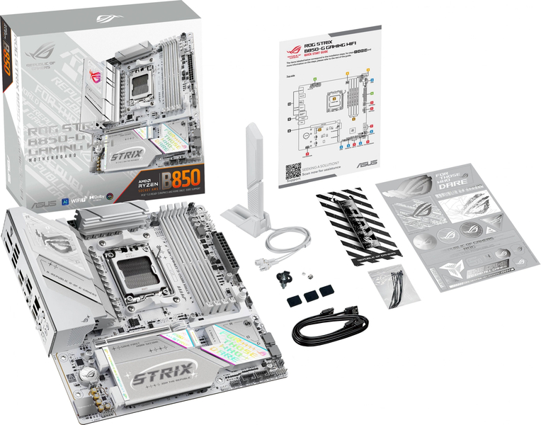 Материнская плата Материнская плата ASUS ROG STRIX B850-G GAMING WIFI, AM5, B850, 4*DDR5, 2*SATA, 4*M.2, 6*USB 3.2, 2*USB 2.0, Type-C, 2*PCIx16, DP+HDMI, ATX; 90MB1M30-M0EAY0